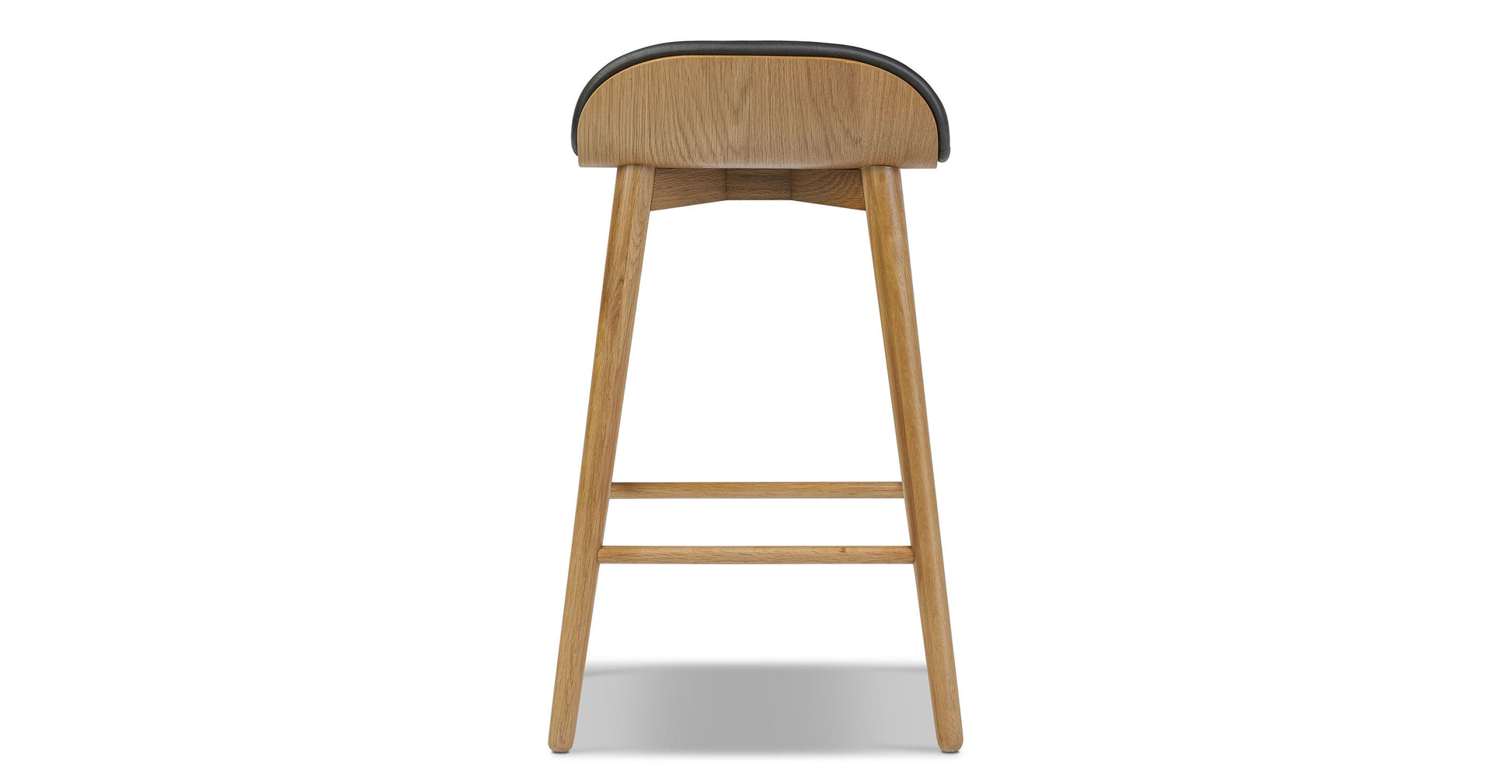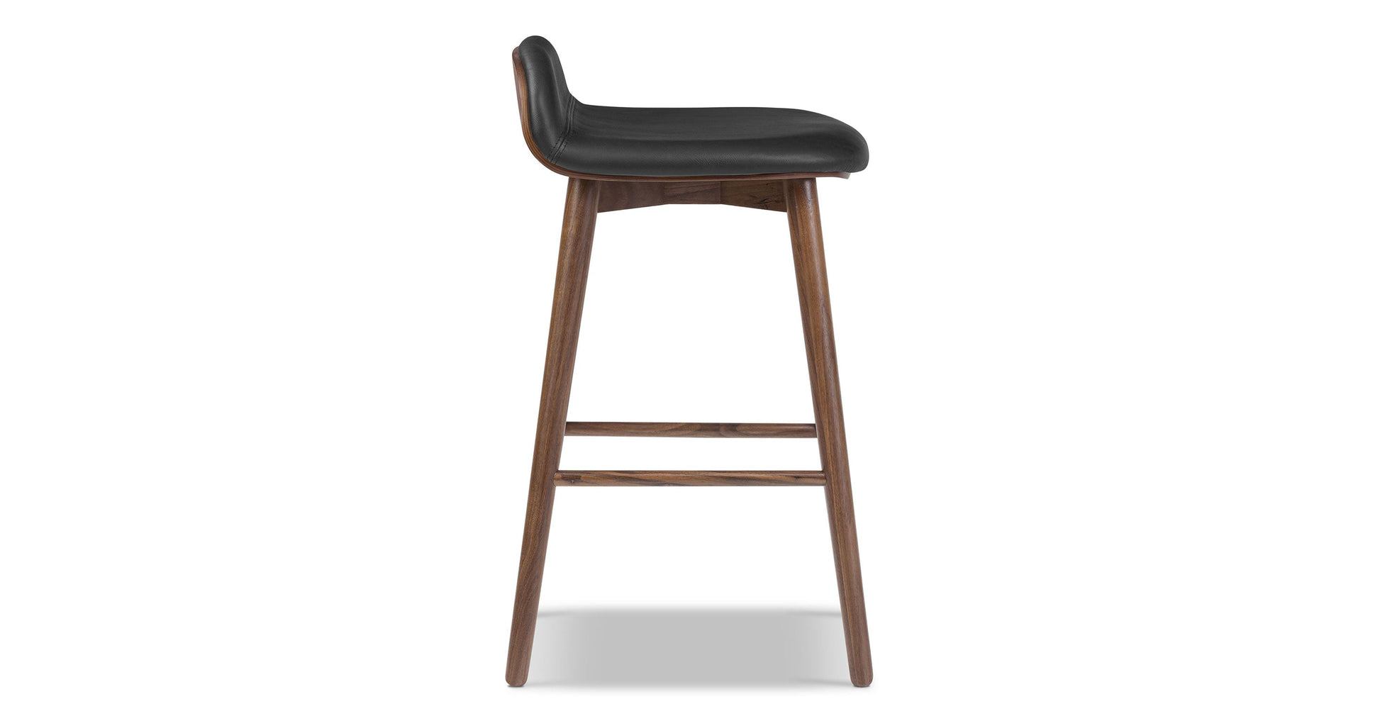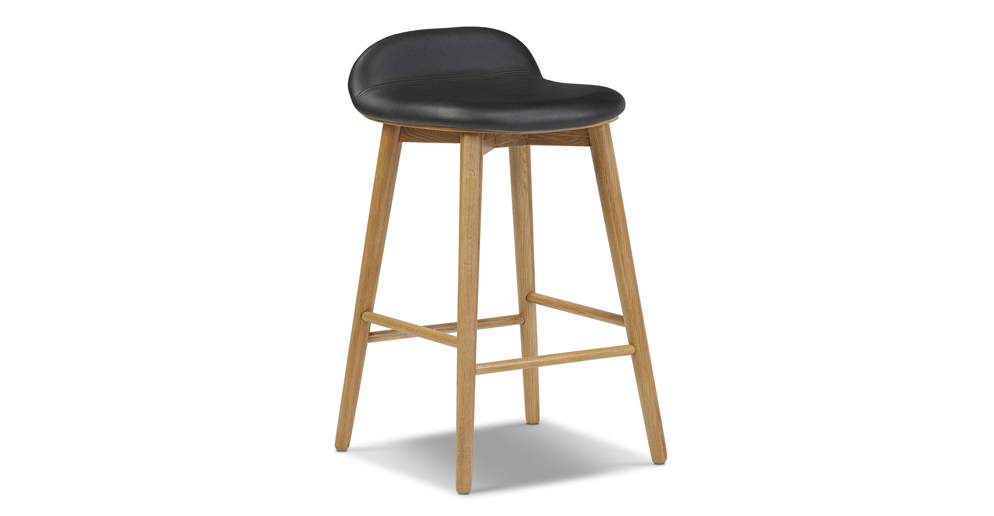 Elegante, minimale e modernissimo. Rinnova il tuo bancone, l'isola o l'area bar con questo moderno sgabello senza schienale, realizzato in massello di noce nero americano o rovere bianco. La comoda imbottitura in schiuma è rivestita in elegante pelle nera per un look pulito e minimalista.