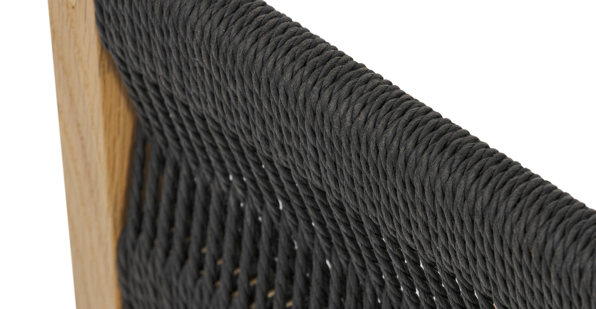 Dite "cin cin" alle sedute rialzate! Il nostro sgabello da bancone, un'arguta combinazione di legno massello e finitura rovere, si distingue per il suo stile. Seduta e schienale in corda nera intrecciata a mano? È come sedersi su un'amaca chic nel vostro bar preferito. Realizzato con precisione e un pizzico di ribellione, questo sgabello non è solo un mobile: è il vostro lasciapassare per sedersi con stile. Sorseggiate, chiacchierate e valorizzate il vostro spazio, una seduta spiritosa alla volta.