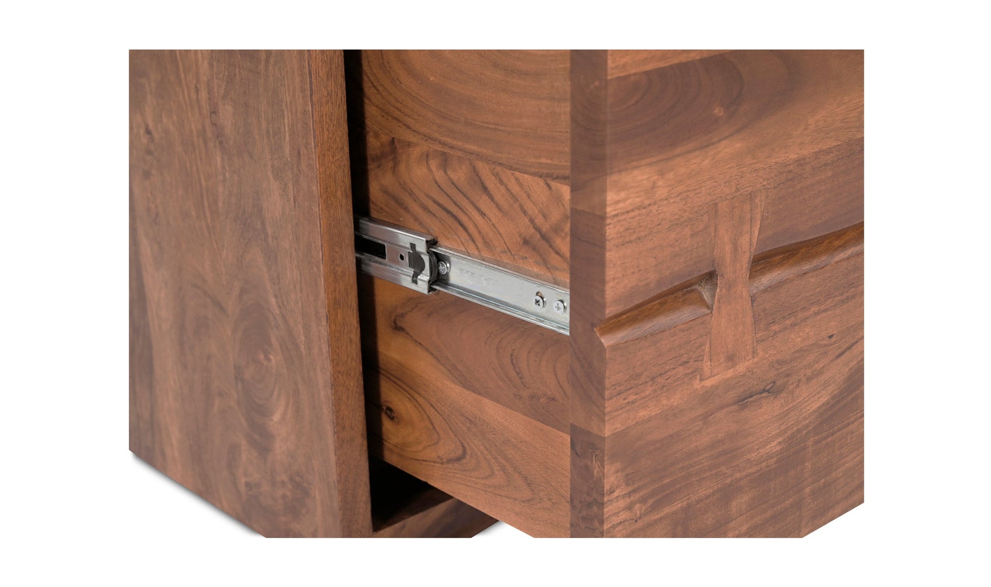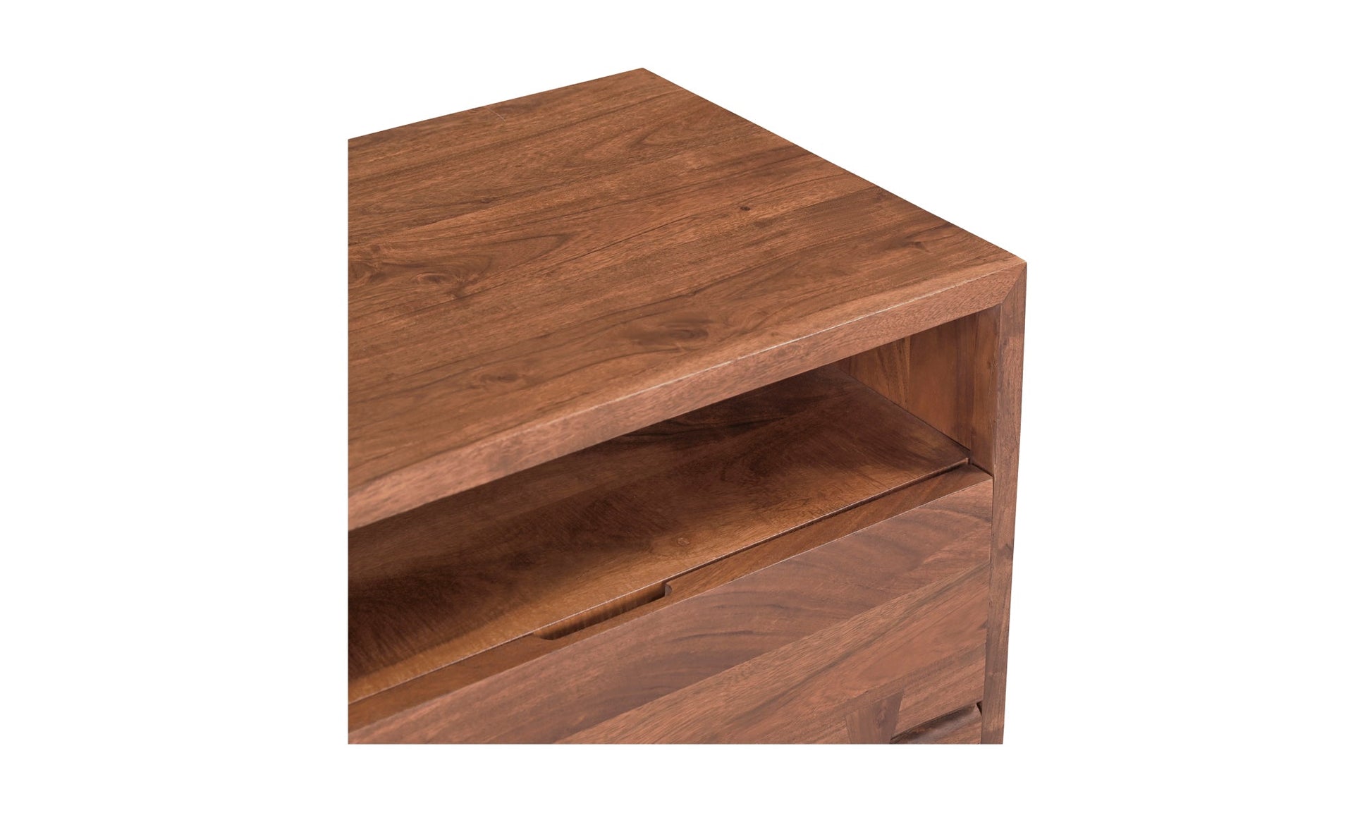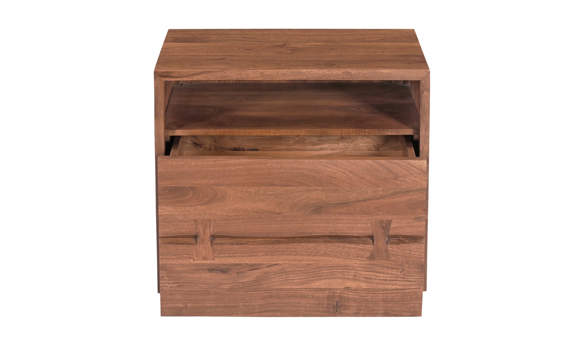 Il comodino Madagascar è realizzato in acacia solida con bordi vivi, con una finitura marrone caldo che mette in risalto le venature naturali del legno e crea un aspetto caldo e invitante per la tua casa.