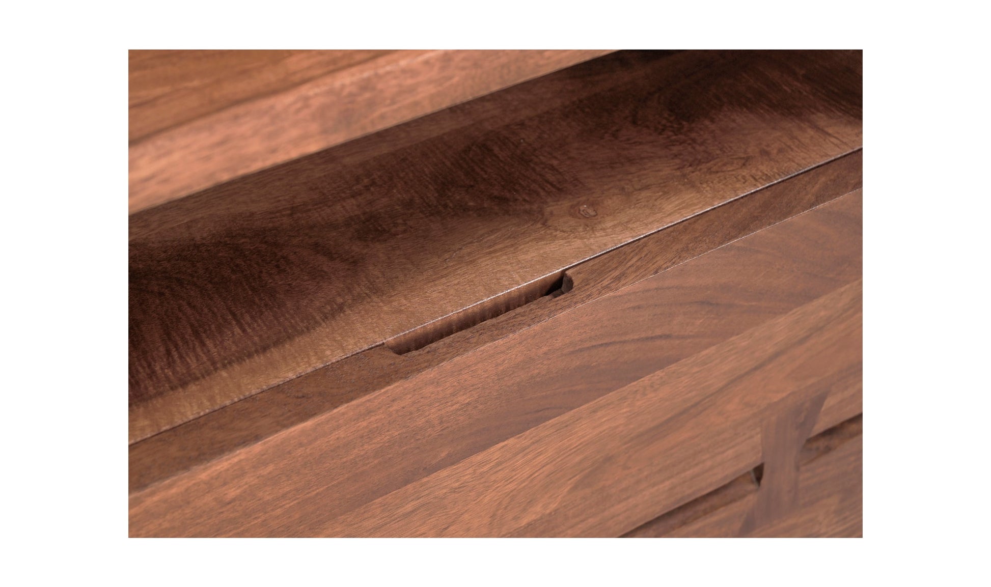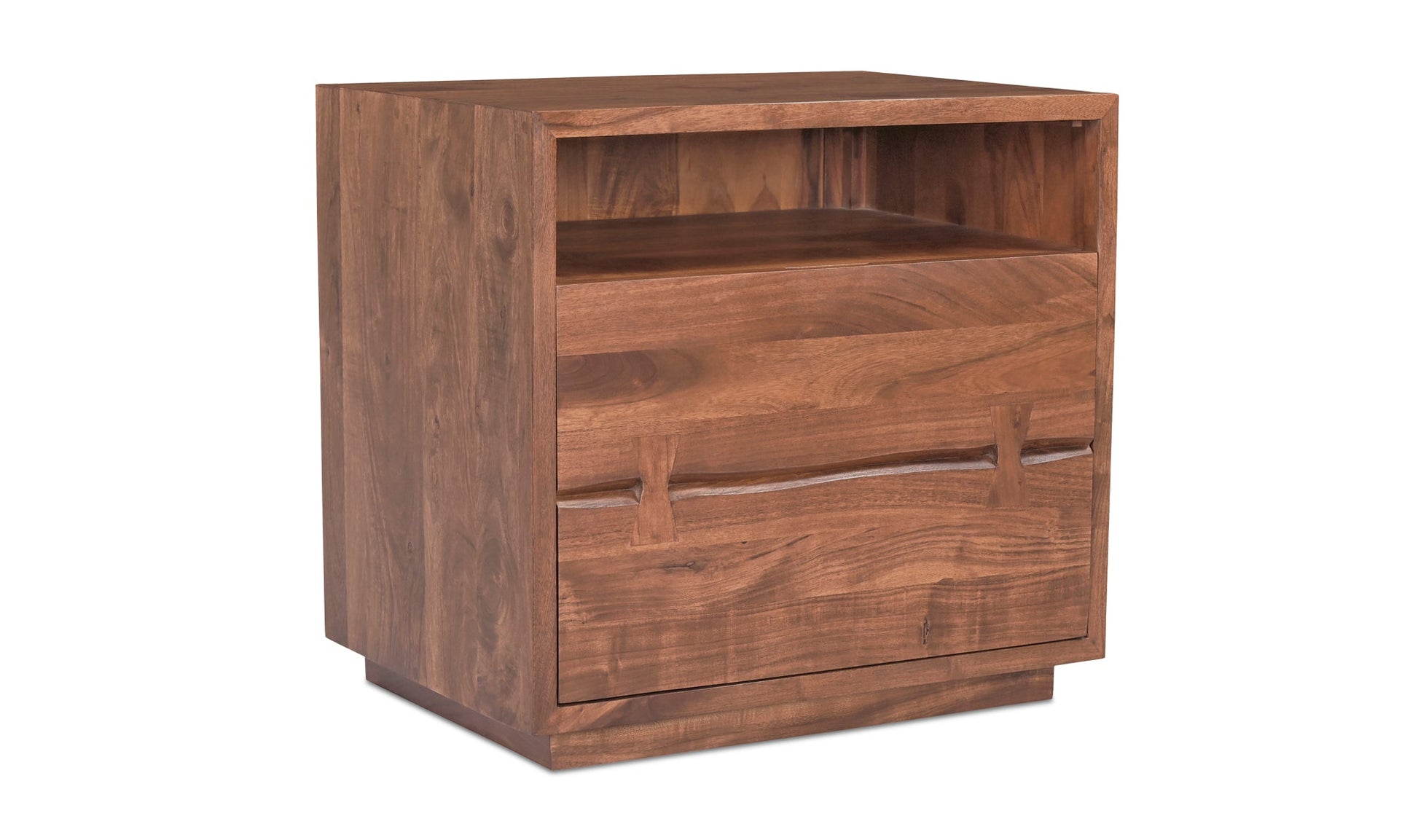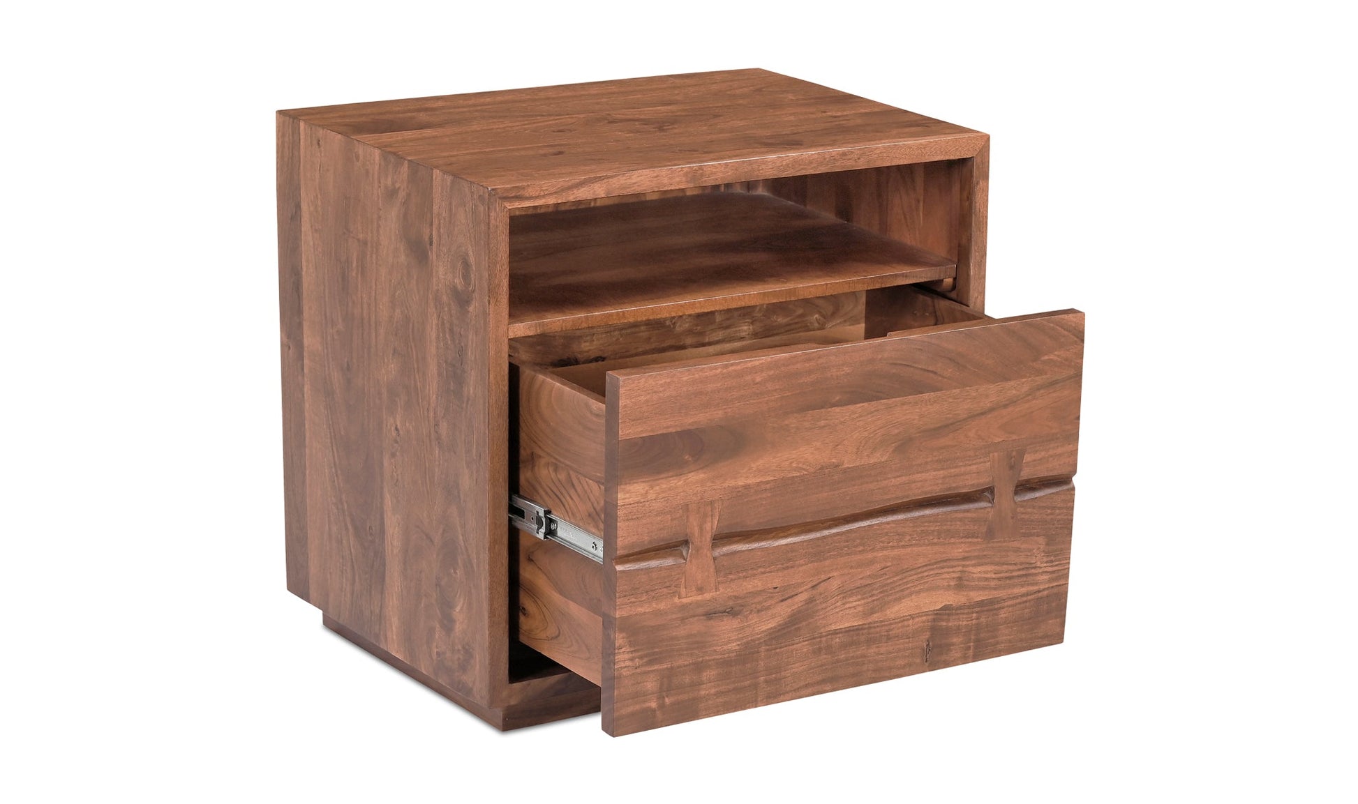 Il comodino Madagascar è realizzato in acacia solida con bordi vivi, con una finitura marrone caldo che mette in risalto le venature naturali del legno e crea un aspetto caldo e invitante per la tua casa.