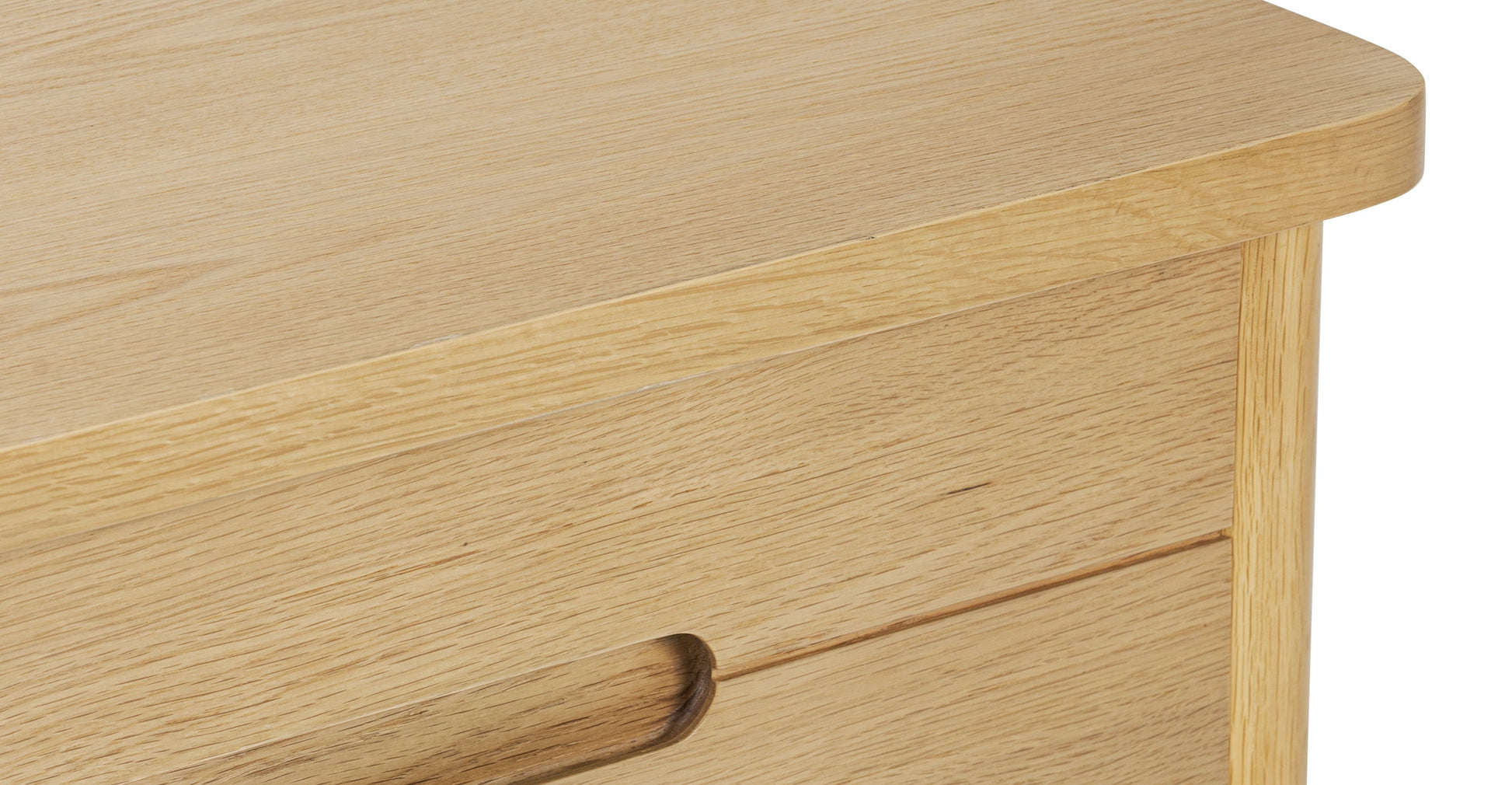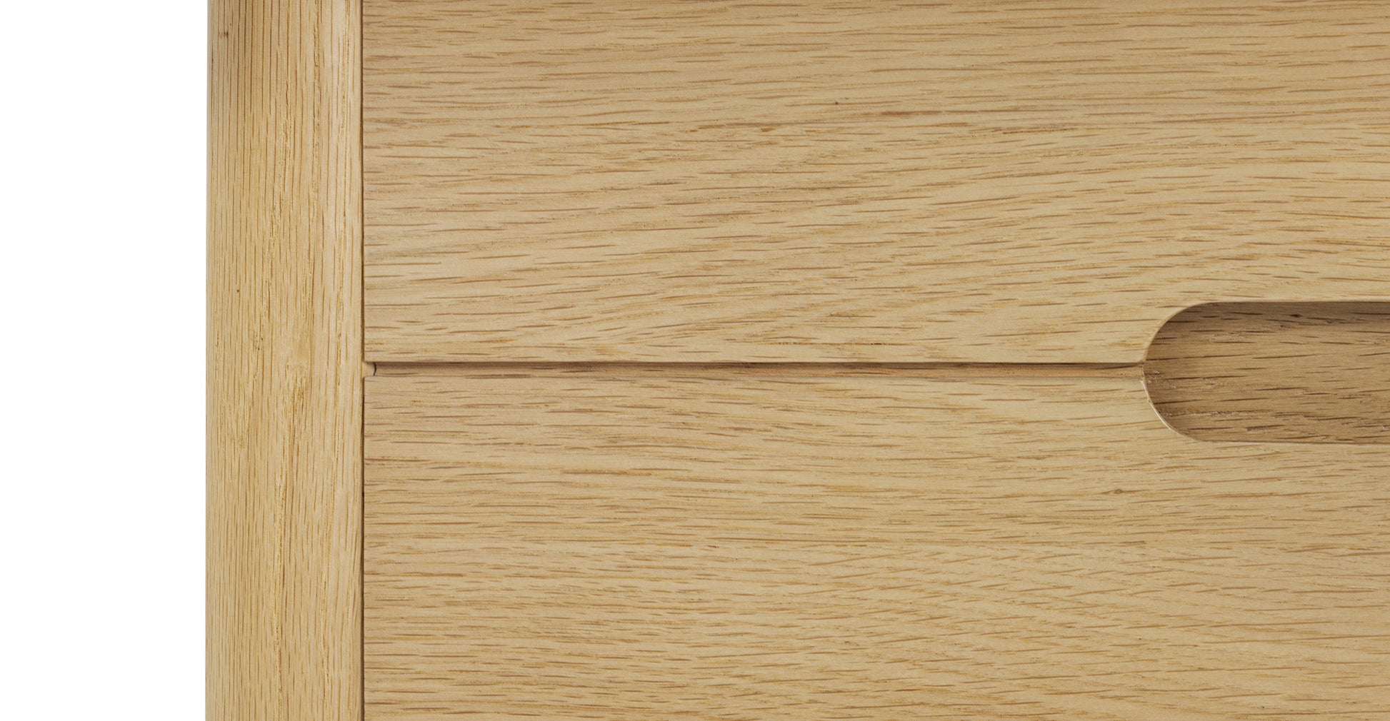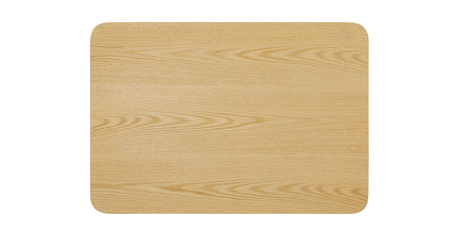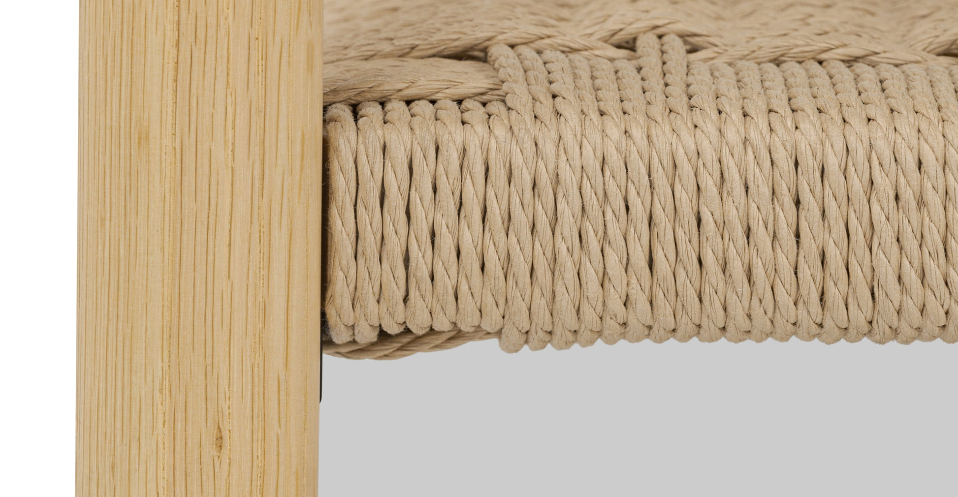 Materiali: Rovere massello e impiallacciato (colore rovere chiaro), impiallacciatura di acacia (colore marrone chiaro), legno massello di gomma, legno duro ingegnerizzato, corda di carta danese, feltrini