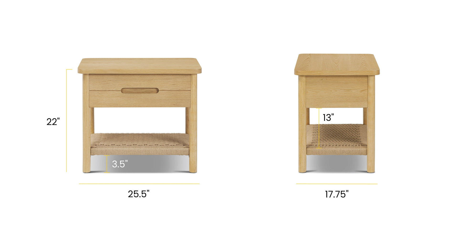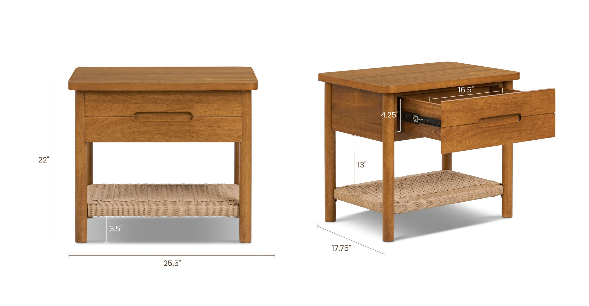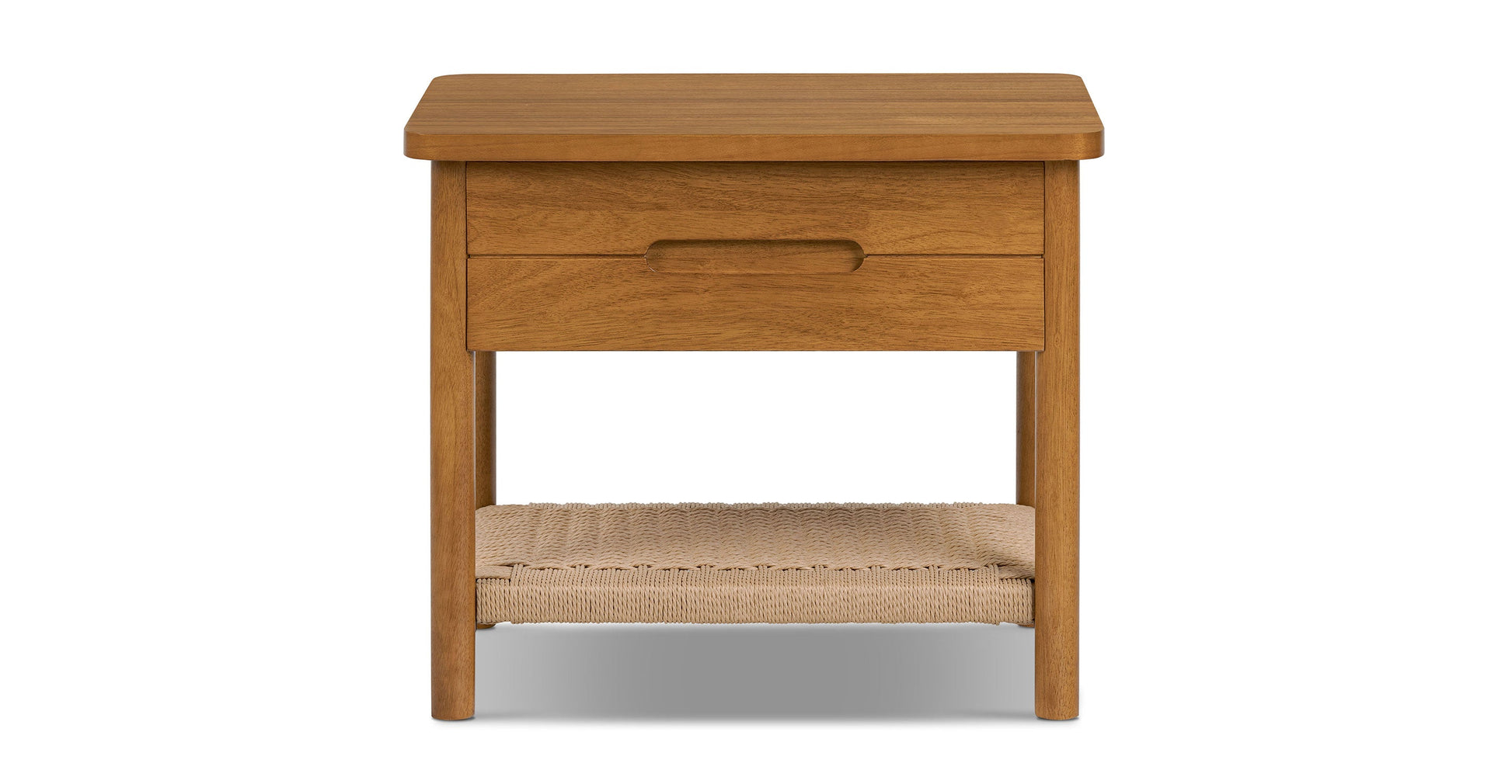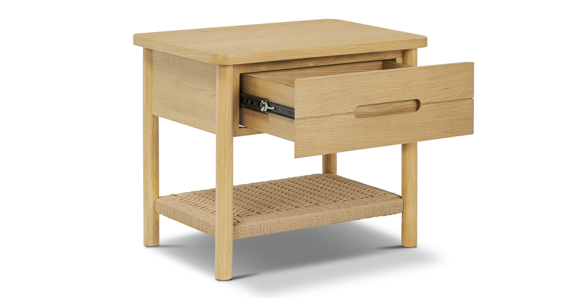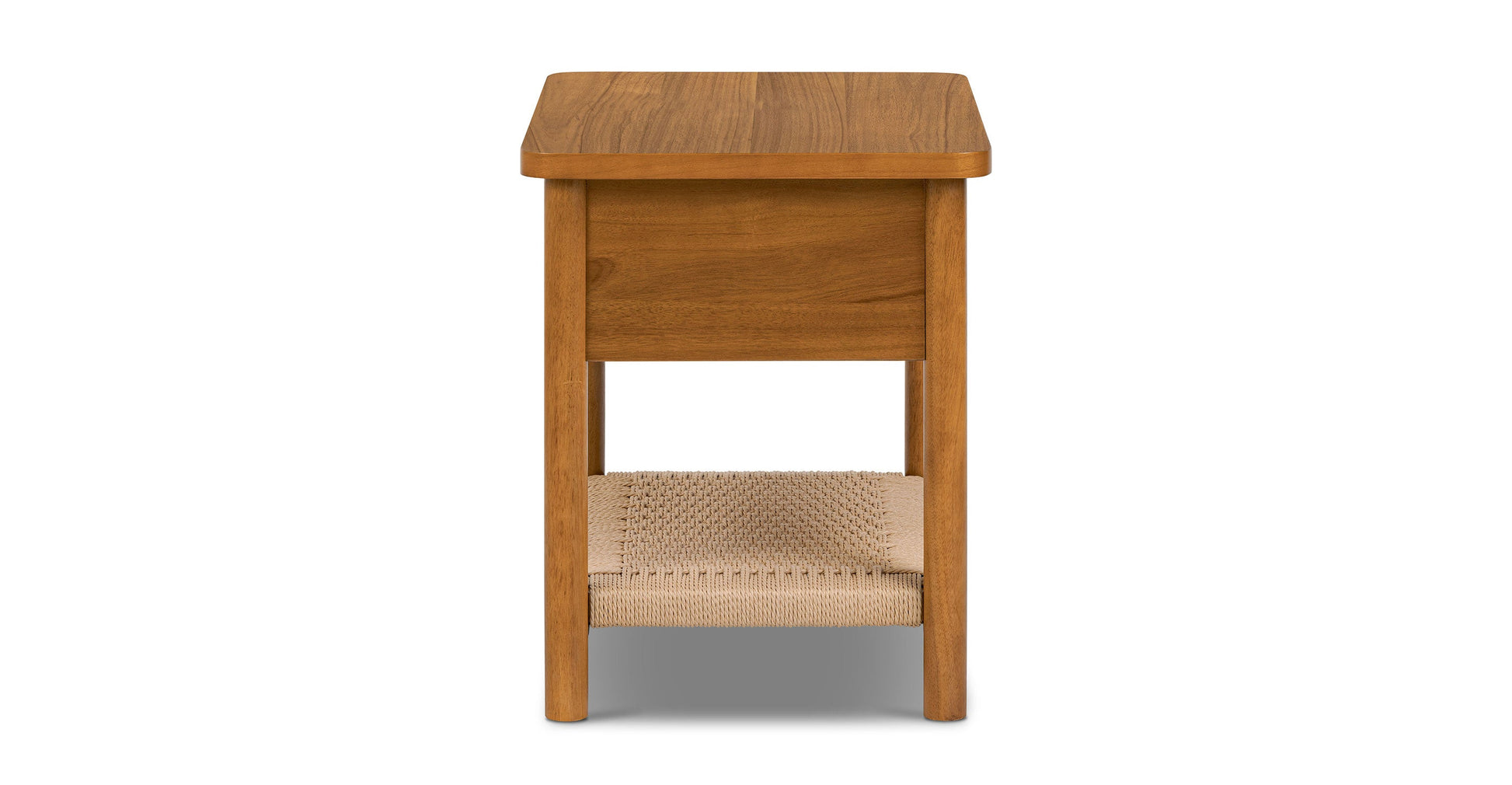 Ecco il tuo nuovo compagno di letto: un comodino tanto intelligente quanto affascinante. Con un ripiano in corda intrecciata a mano che aggiunge un tocco artigianale e un cassetto che si apre su eleganti binari metallici per nascondere i tuoi tesori notturni, è realizzato in legno massello e impiallacciato per garantire resistenza e stile. Perfetto per mantenere il tuo spazio ordinato e pieno di carattere.