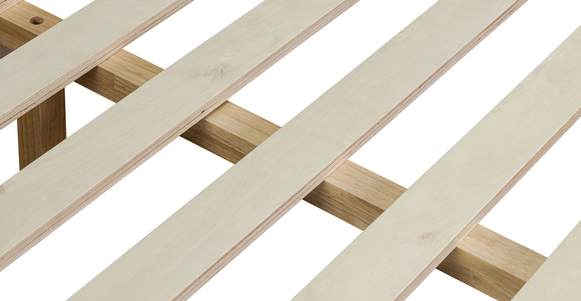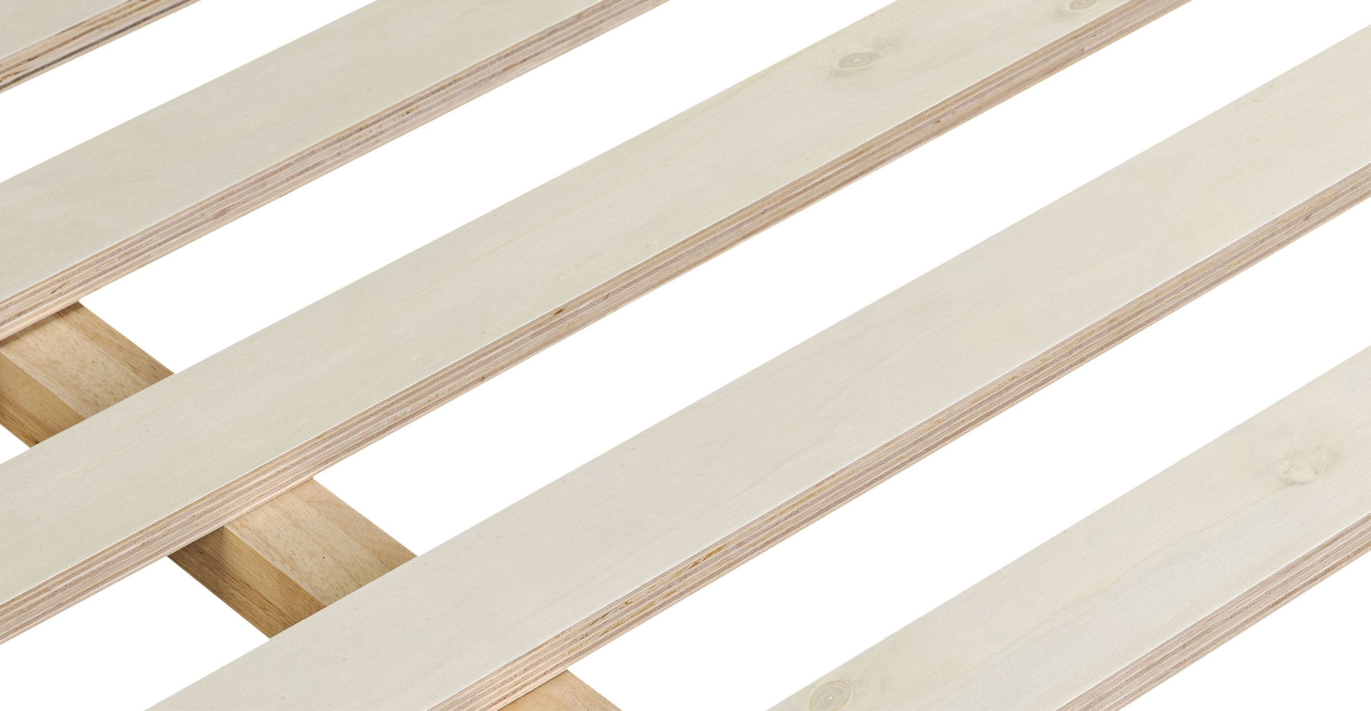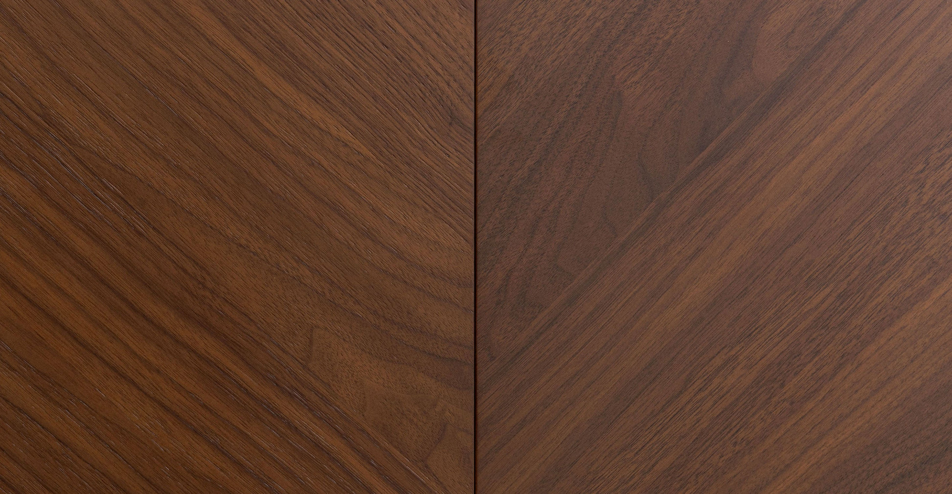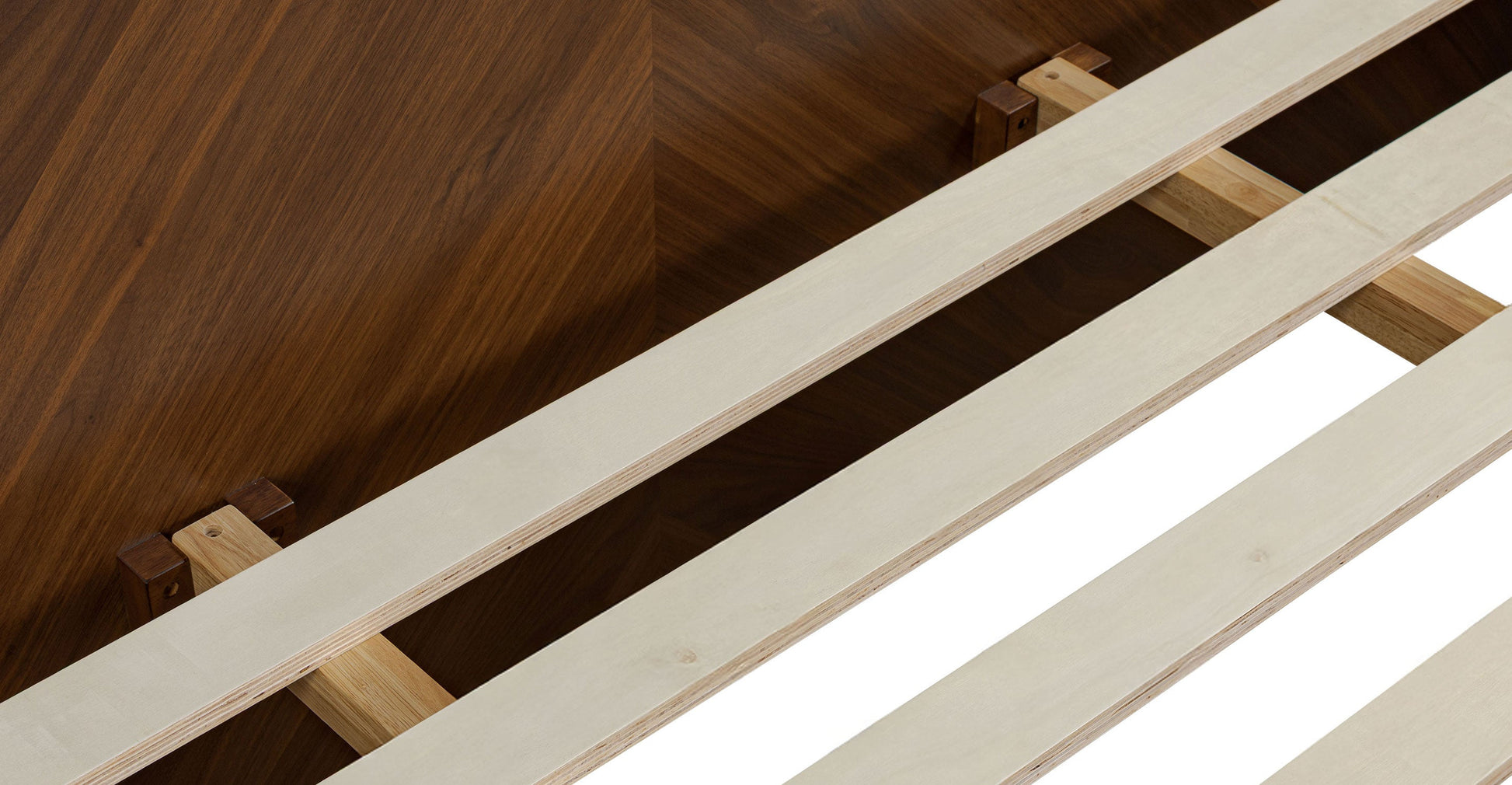 Con il suo profilo basso e sartoriale e la ricca tonalità del noce, questo letto a piattaforma offre un senso di calma che risulta al tempo stesso rassicurante e invitante. Le gambe in noce massello si curvano dolcemente agli angoli, ancorando le sponde laterali e una pediera rivestita in impiallacciatura di noce per un'ondata continua di calde venature. In alto, una testiera con motivo a chevron in impiallacciatura di noce conferisce un ritmo delicato e moderno, sorprendente ma facile da vivere. Comodini sospesi si librano su entrambi i lati, con i cassetti dotati di guide a chiusura ammortizzata in nero opaco, maniglie discrete e un passacavi posteriore per i dispositivi elettronici. Costruito con una resistente rete a doghe, è una tela versatile per la tua biancheria, che tu preferisca un bianco candido o fantasie audaci. Aggiungi il comfort e accomodati; questo è calore moderno, fatto per i sogni più semplici.