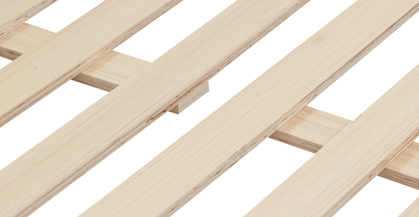 • Supporto per base a doghe in legno massello ingegnerizzato con gambe centrali regolabili