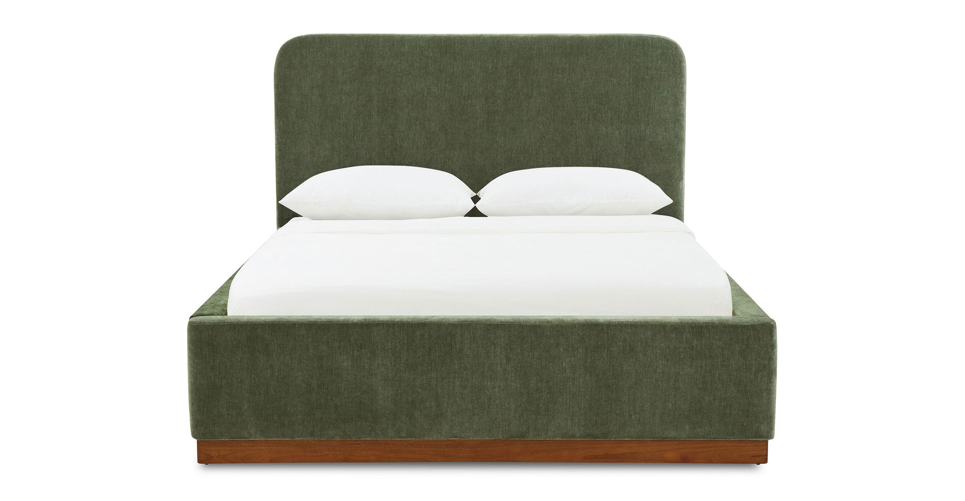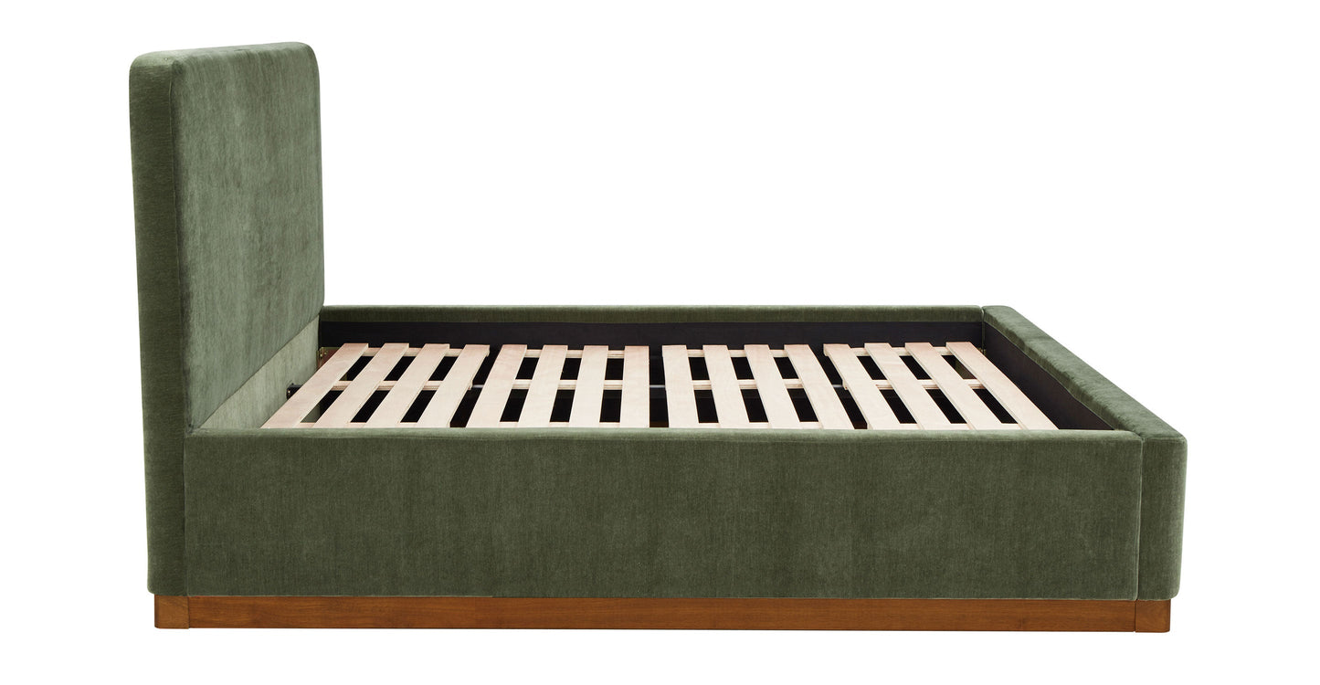 Lasciatevi avvolgere dall'abbraccio dell'eleganza e del comfort. La nostra testiera e la nostra struttura imbottite, rivestite in un tessuto pregiato, sfoggiano una cornice in legno a vista su tutti i lati, aggiungendo un tocco di fascino rustico. La base in legno massello, rivestita in una lussuosa finitura noce, è il supporto perfetto. Esaltate il vostro rifugio del sonno con questa sinfonia di stile e artigianalità!