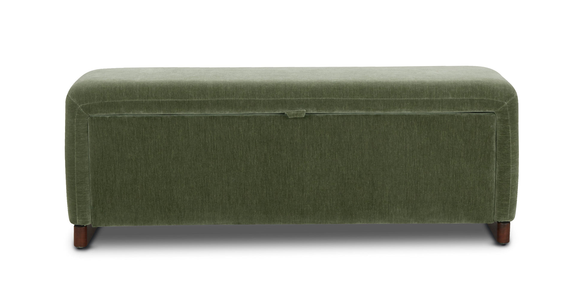 Questa panca contenitore è la tua nuova arma segreta: elegante all'esterno, discreta all'interno. Solleva il coperchio per rivelare uno scomparto nascosto, dotato di una cerniera di apertura/chiusura fluida. Con una seduta comoda e gambe in noce, è funzionale, favolosa e pronta a tenere sotto controllo il disordine!