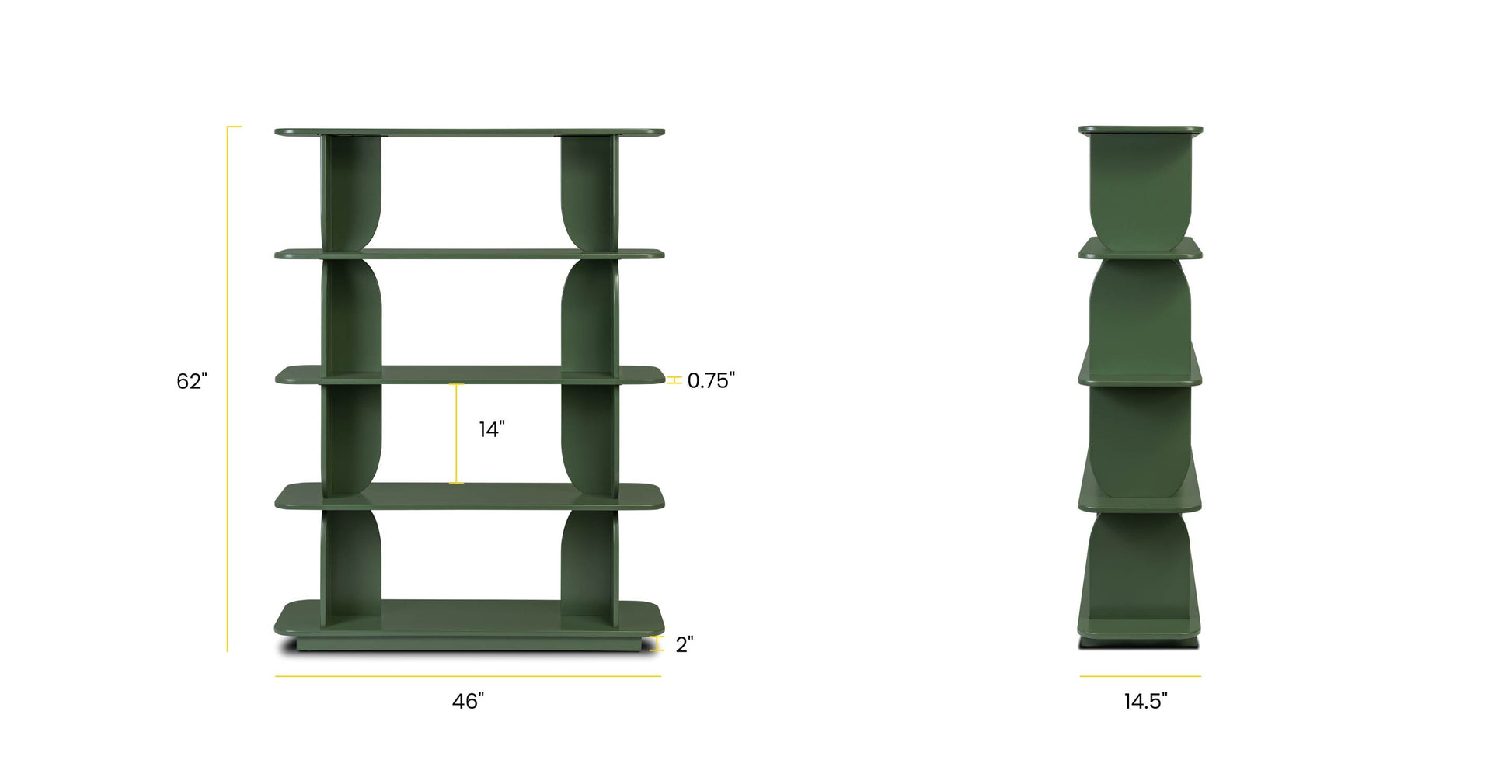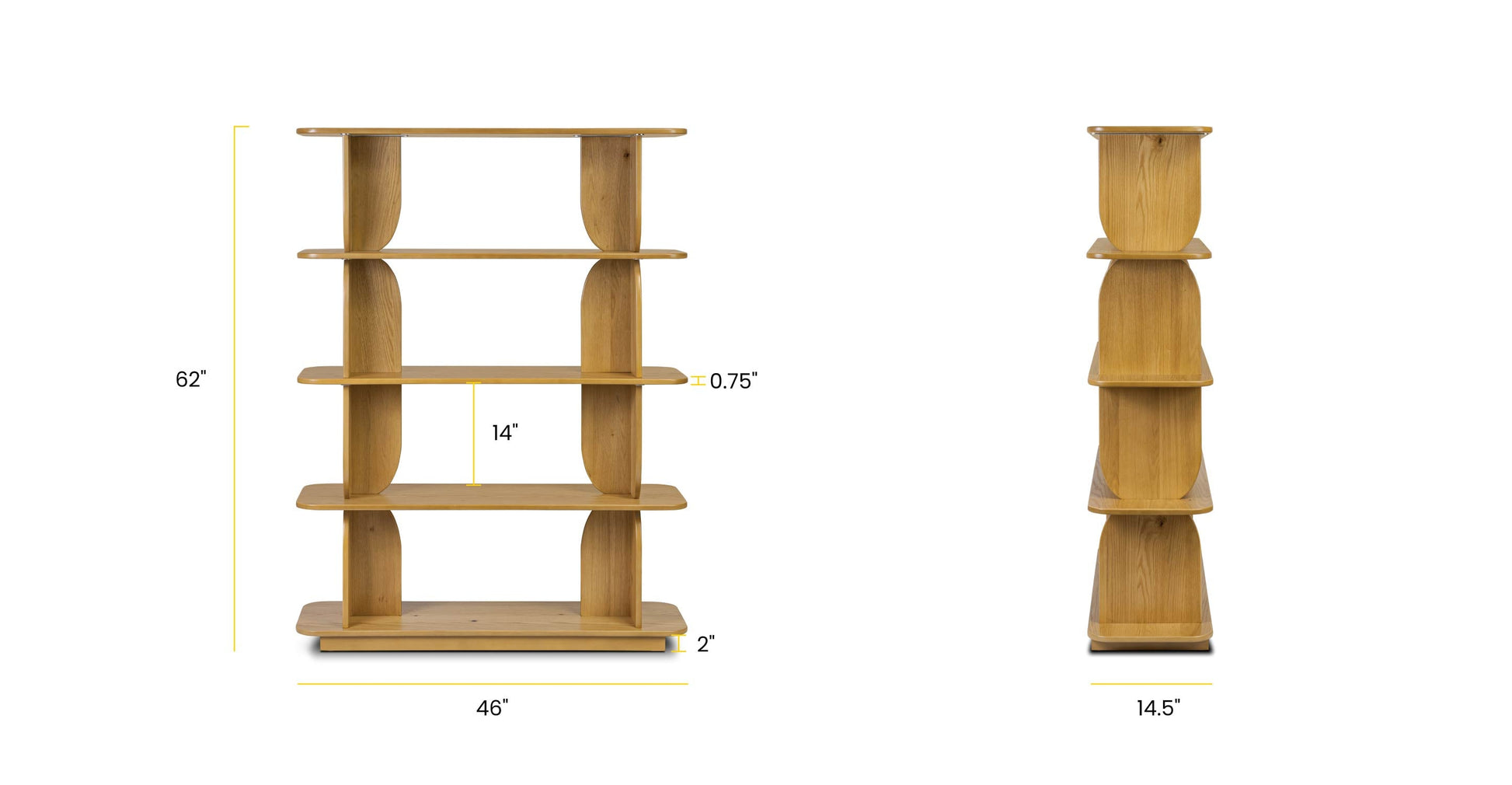 Dimensioni dello scaffale: 46'L x 14,5'L x 0,75'H