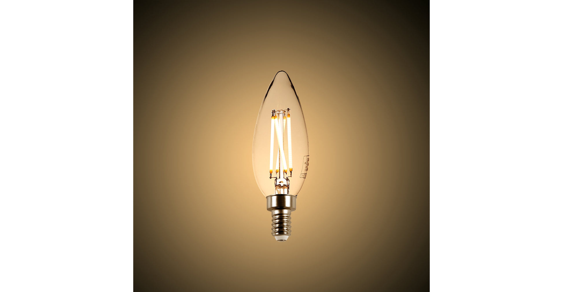 • Lampadina a filamento LED C32 completamente dimmerabile con attacco E12 medio