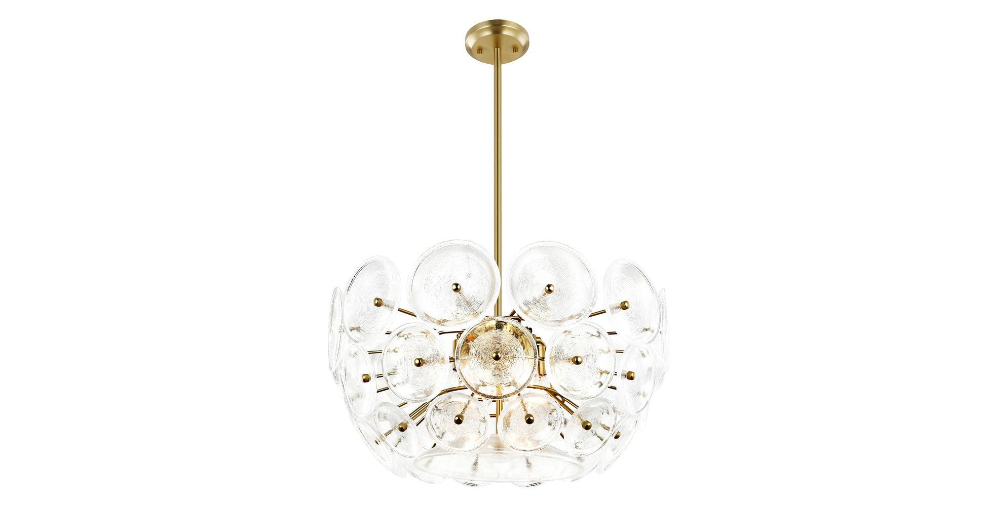L'accattivante lampadario a 6 luci Chambery, con i suoi dischi in vetro incastonato che si irradiano da una base in ottone spazzolato, ha un fascino vintage. Il suo design sorprendente si adatta a qualsiasi ambiente, dal contemporaneo al tradizionale, e Chambery è un ottimo modo per aggiungere eleganza a qualsiasi stanza.