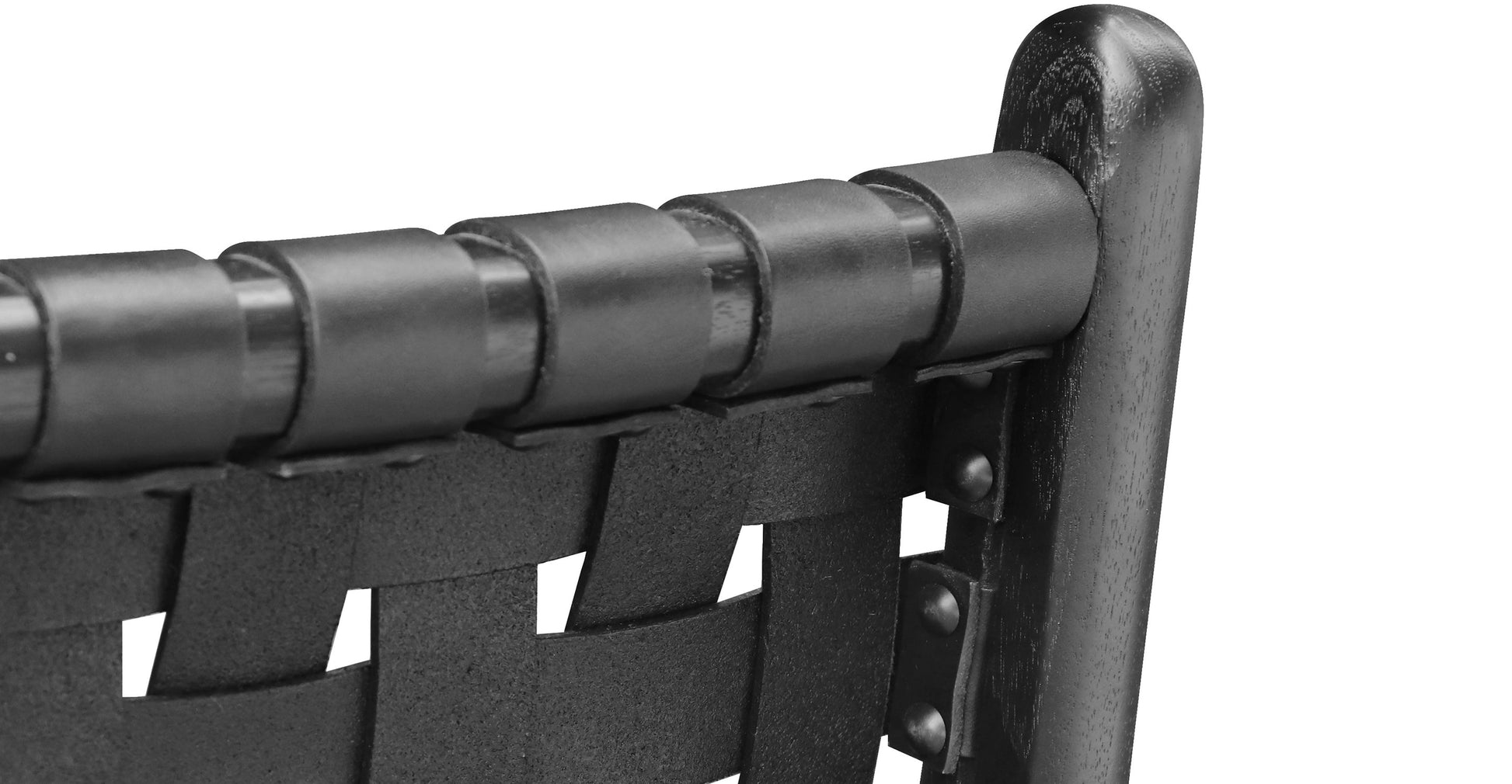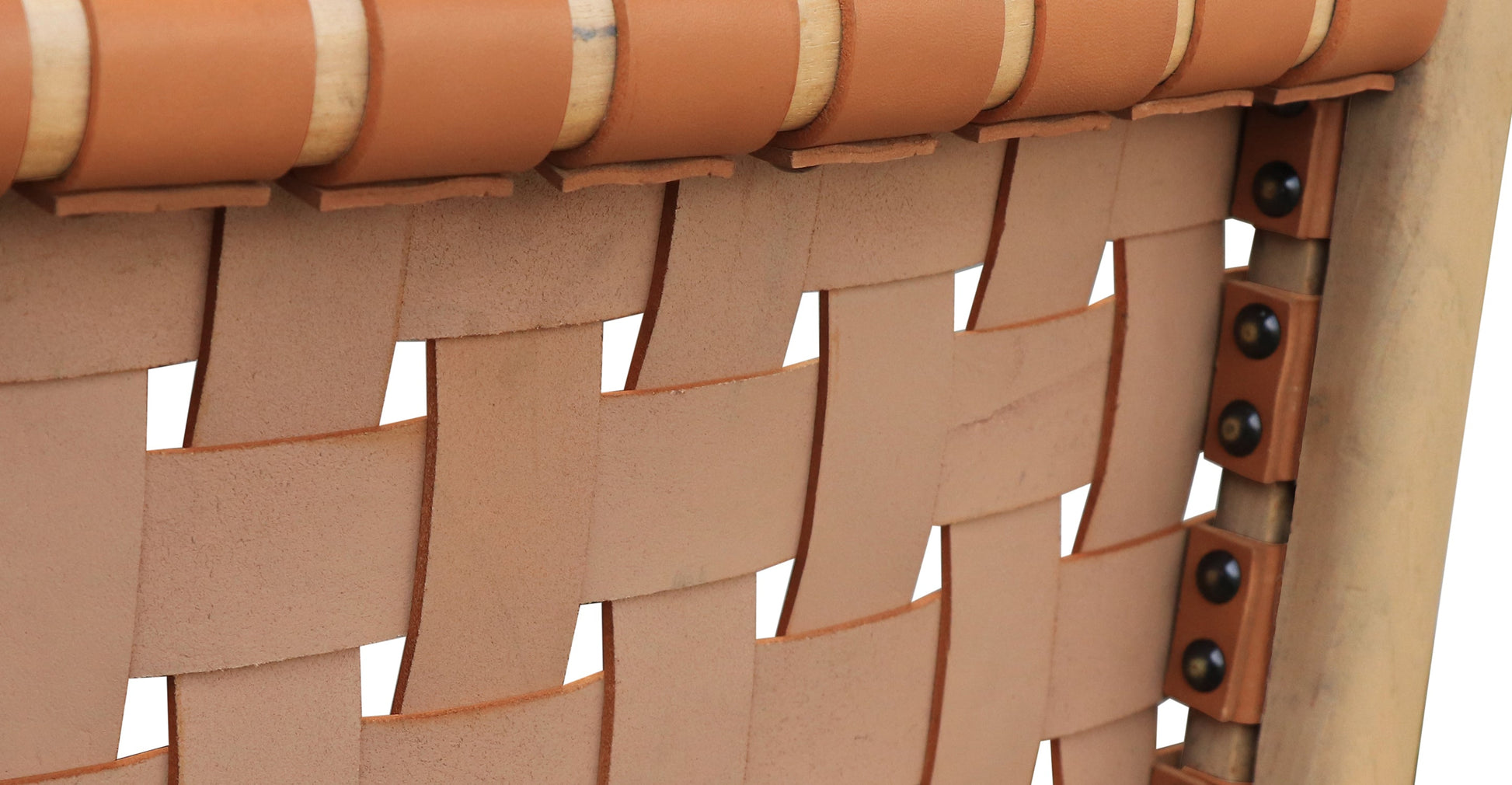 • Seduta e schienale in cinghia di cuoio intrecciata