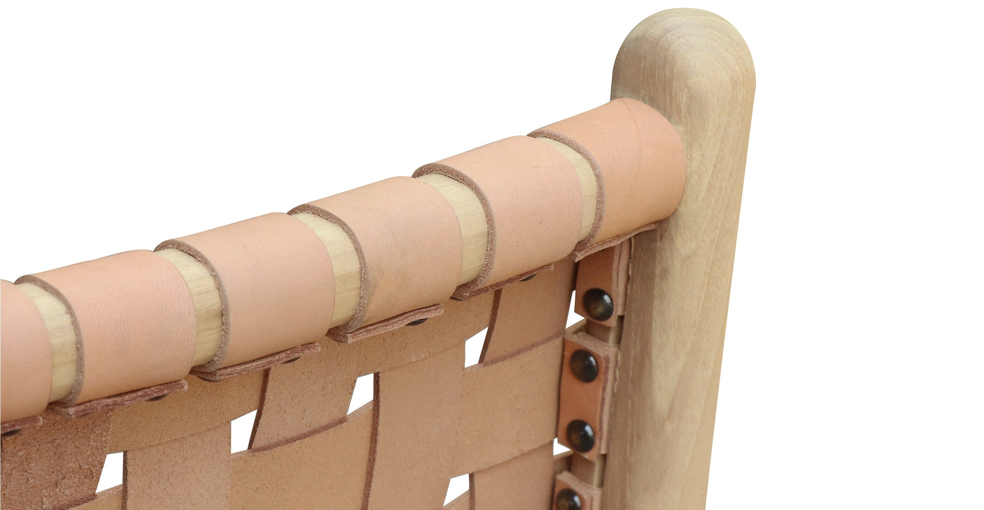 Niente dice "benvenuto" come un buon pasto, e un buon pasto inizia con un ottimo set da pranzo. Progettata pensando a forma e funzionalità, la nostra sedia da pranzo Banda in teak e pelle è all'altezza del compito. Strisce di pelle pieno fiore conciata al vegetale intrecciate su una struttura in legno di teak conferiscono uno stile sofisticato ma confortevole di cui non vi stancherete mai.