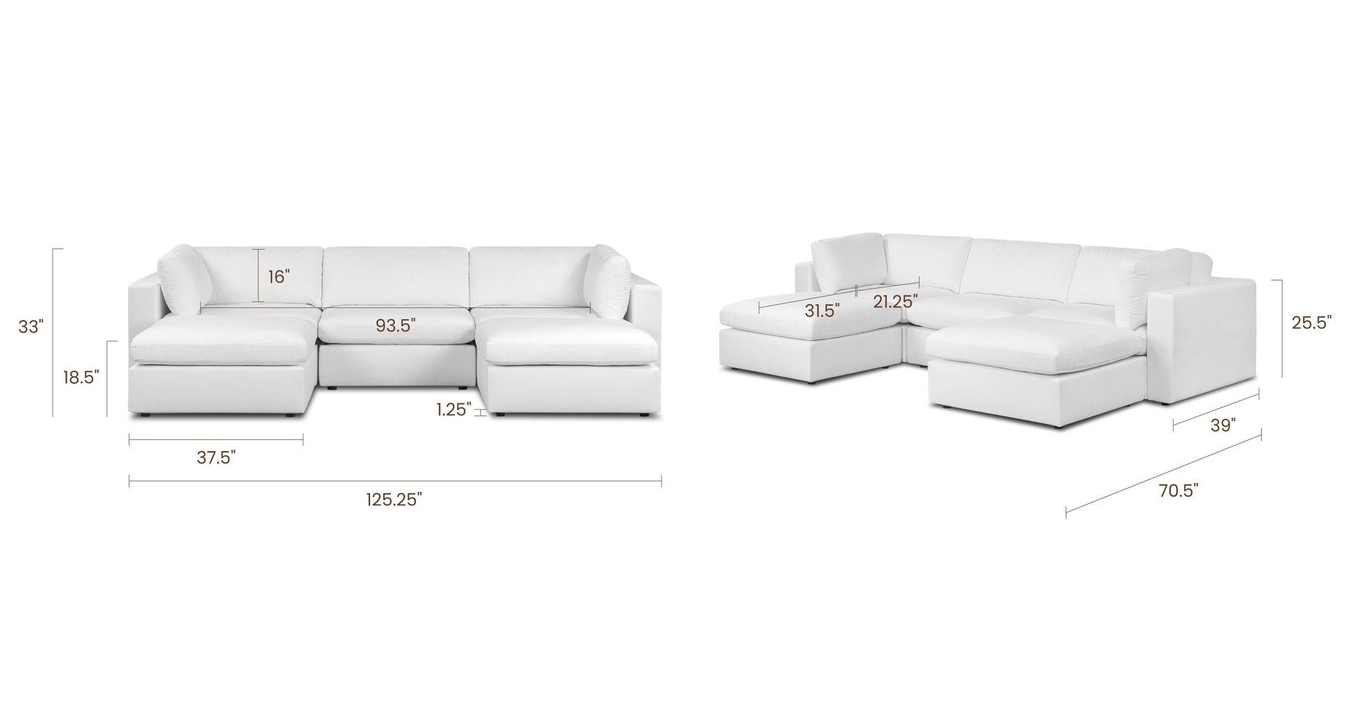 Rimodella il tuo spazio con il nostro divano modulare all'infinito, rivestito in tessuto idrorepellente e antimacchia con rivestimento Repellis per proteggere da schizzi di succo o vino. La sua struttura in legno massello essiccato in forno e le molle sinuose garantiscono un comfort duraturo, mentre i morbidi cuscini in schiuma rivestiti in piuma, reversibili, lavabili e dotati di cerniera, ti permettono di cambiare il rivestimento in qualsiasi momento per un look sempre nuovo. Certificato OEKO-TEX, questo divano si adatta a qualsiasi ambiente, invitando a serate accoglienti o a vivaci riunioni con uno stile senza tempo e adattabile.