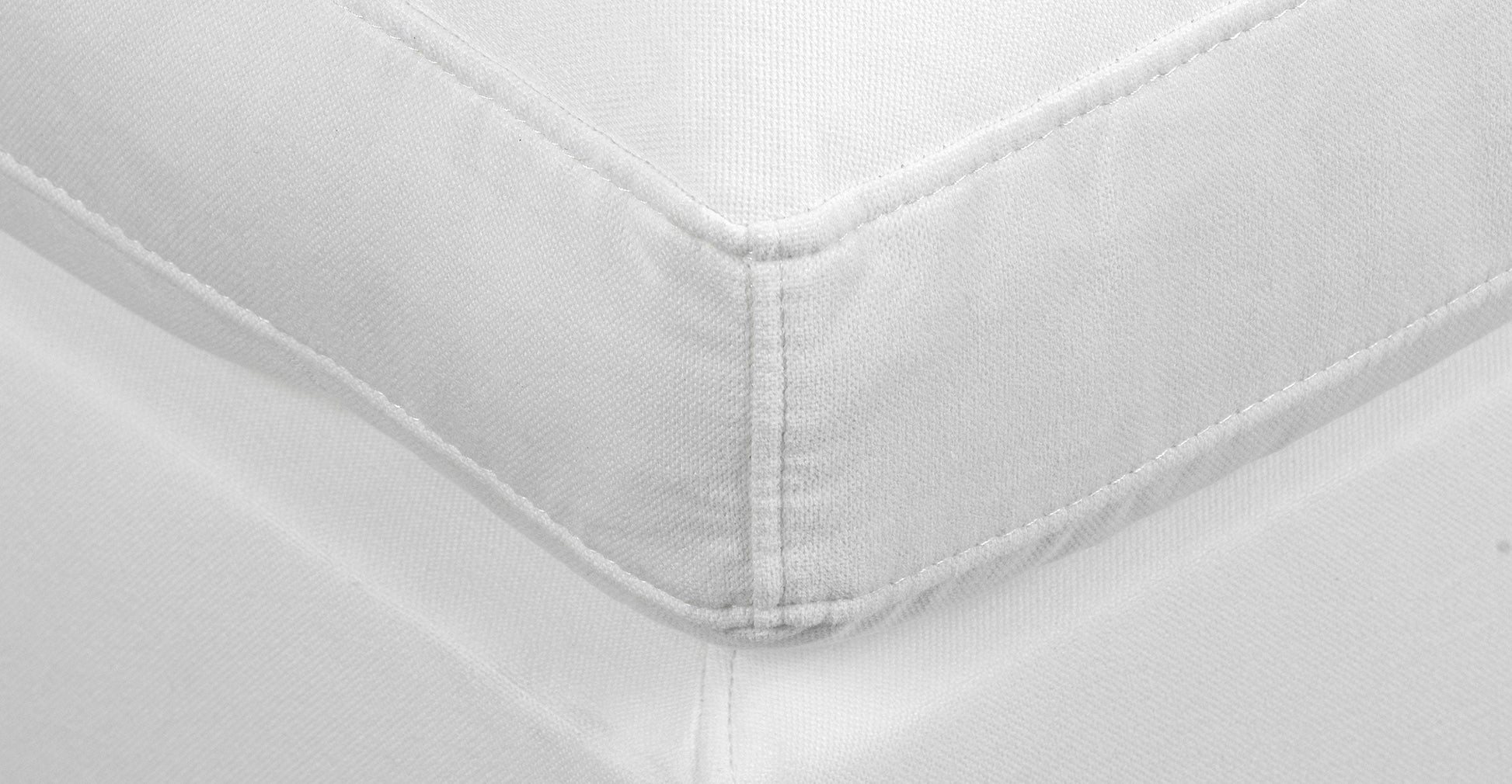 - I cuscini dei sedili sono imbottiti con un'anima in schiuma ad alta densità avvolta in un'alternativa di piumino ipoallergenica e vegana di alta qualità.
