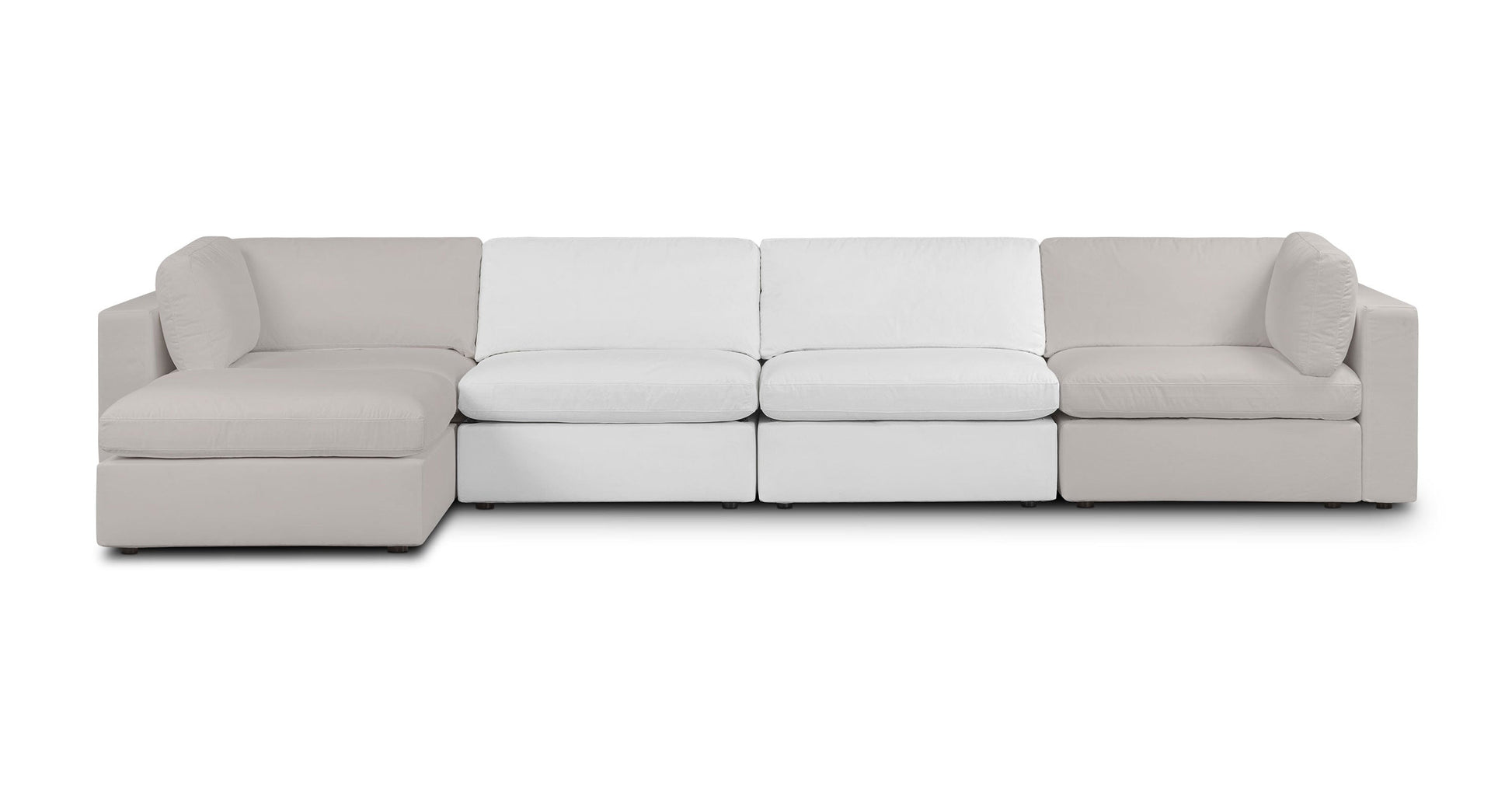 Rimodella il tuo spazio con il nostro divano modulare all'infinito, rivestito in tessuto idrorepellente e antimacchia con rivestimento Repellis per proteggere da schizzi di succo o vino. La sua struttura in legno massello essiccato in forno e le molle sinuose garantiscono un comfort duraturo, mentre i morbidi cuscini in schiuma rivestiti in piuma, reversibili, lavabili e dotati di cerniera, ti permettono di cambiare il rivestimento in qualsiasi momento per un look sempre nuovo. Certificato OEKO-TEX, questo divano si adatta a qualsiasi ambiente, invitando a serate accoglienti o a vivaci riunioni con uno stile senza tempo e adattabile.