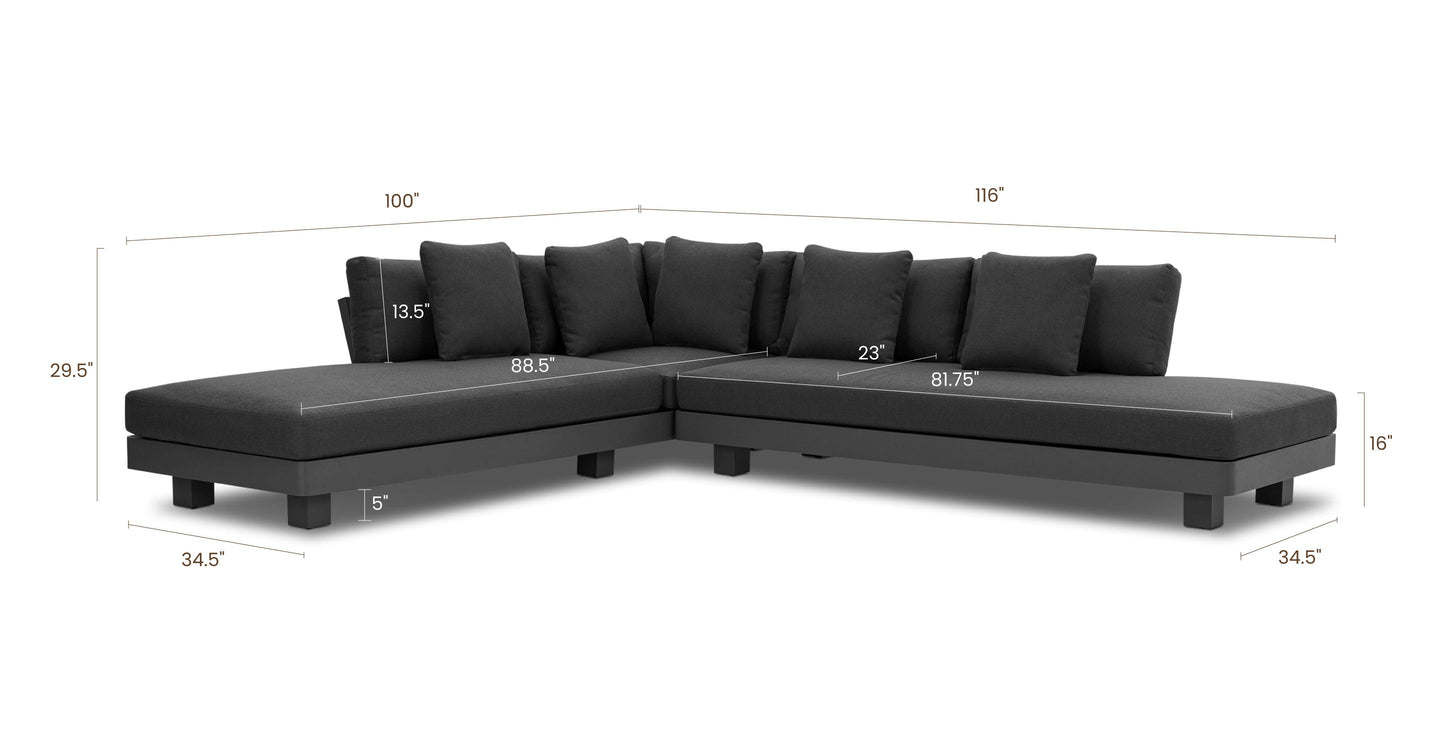 Dimensioni del divano a due posti con bracciolo destro: 100''L x 34,5''P