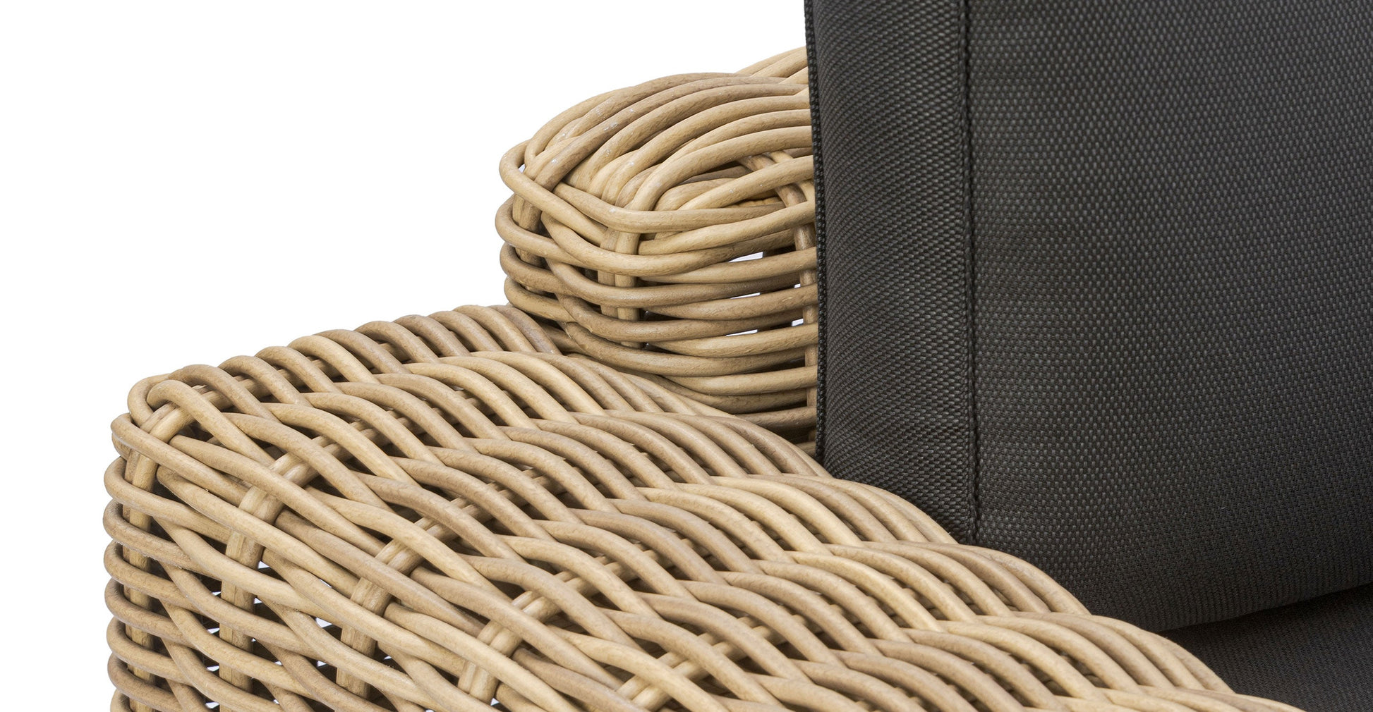 Materiali: rattan sintetico, acciaio, schiuma ad alta densità, fibra di poliestere