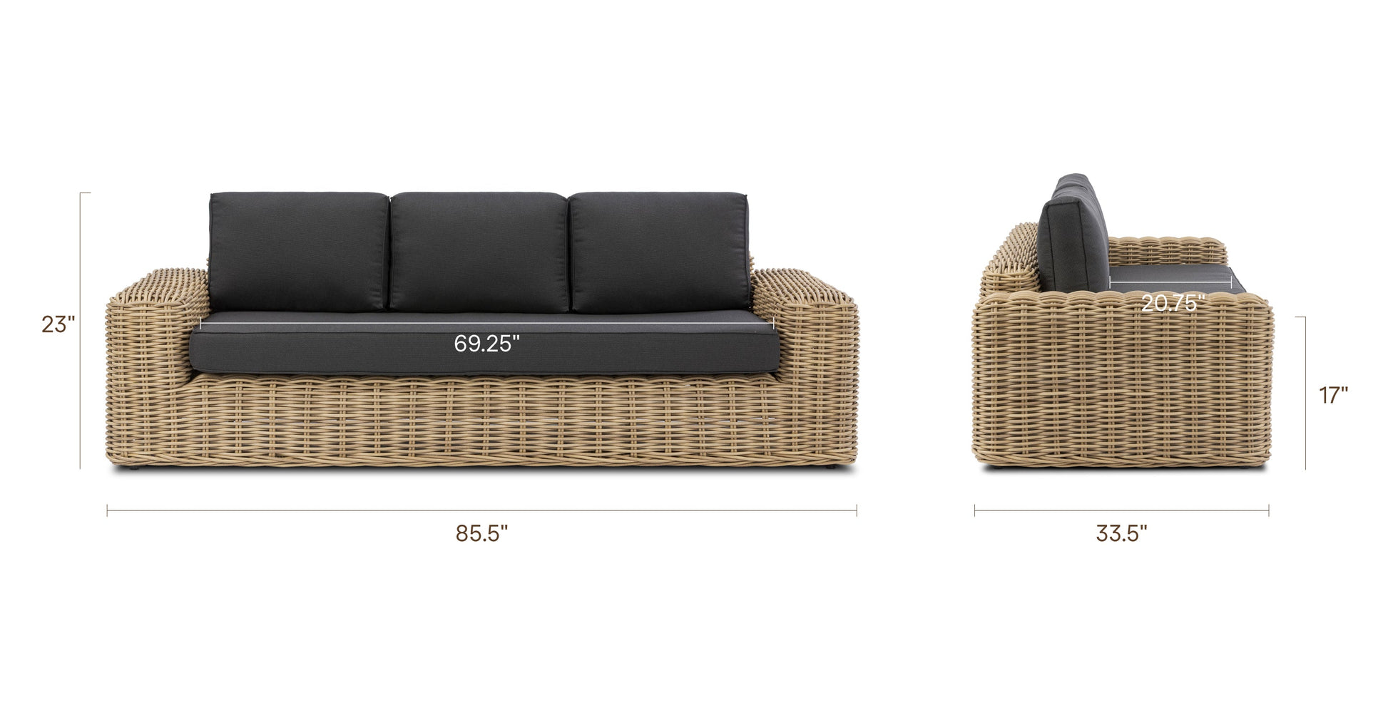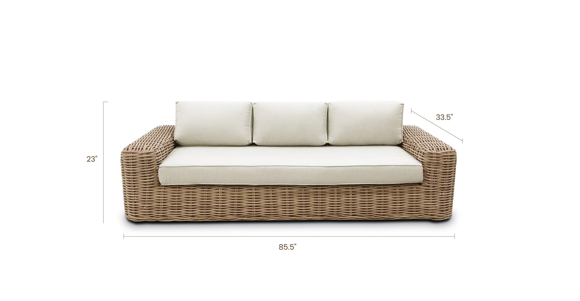 Vi presentiamo la nostra panca Puglia a 3 posti, progettata per donare comfort e stile al vostro spazio esterno. Questo straordinario pezzo vanta una struttura in rattan sintetico, meticolosamente realizzata per imitare la bellezza organica del rattan naturale, garantendo al contempo una durata e una resistenza agli agenti atmosferici superiori. Il suo design elegante e moderno si integra perfettamente con qualsiasi ambiente esterno, che si tratti di un patio, di un giardino o di un angolo relax a bordo piscina. I cuscini di seduta rimovibili del divano offrono un'esperienza di seduta personalizzabile, consentendovi di creare il perfetto livello di comfort e relax. Che vi stiate rilassando con un libro o intrattenendo gli ospiti, il nostro divano da esterno combina senza sforzo eleganza, comfort e praticità a bassa manutenzione, rendendolo la scelta ideale per trasformare il vostro spazio esterno in un'oasi di svago e divertimento.