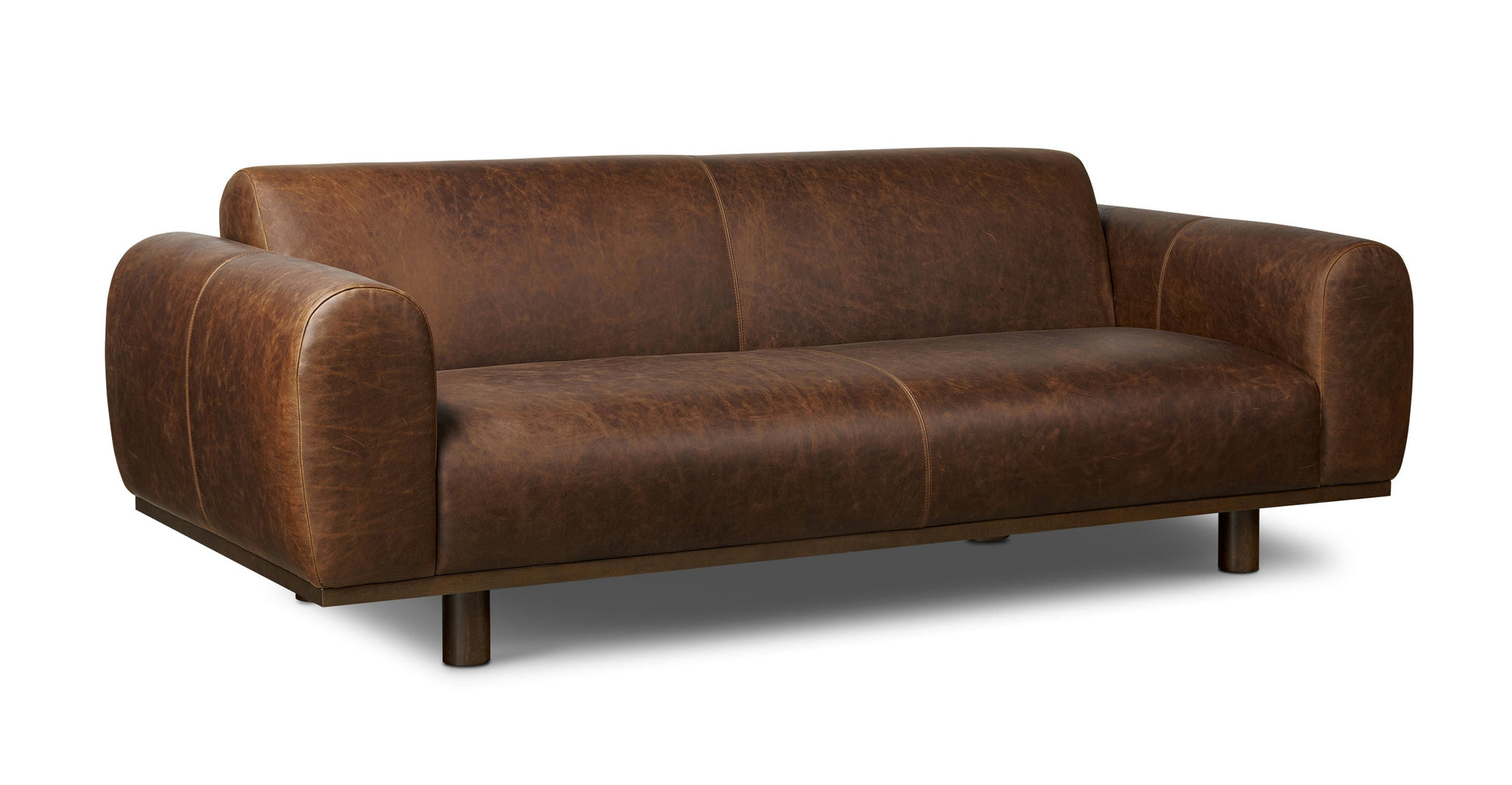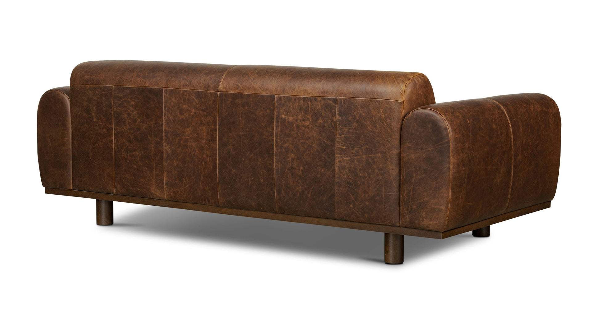 Lasciatevi conquistare dal fascino raffinato del divano Brescia: rivestito in pregiata pelle italiana pieno fiore all'anilina, ogni pezzo è un capolavoro unico. Lasciatevi trasportare dal suo invecchiamento, che si evolve in una bellezza vintage. Godetevi i braccioli arrotondati, ammirando la base in legno a vista e le eleganti gambe rotonde in una lucente finitura noce. Con i cuscini fissi, dite addio ai cuscini che si muovono. Abbracciate l'eleganza senza tempo e la sofisticatezza senza sforzo in un unico, raffinato prodotto.