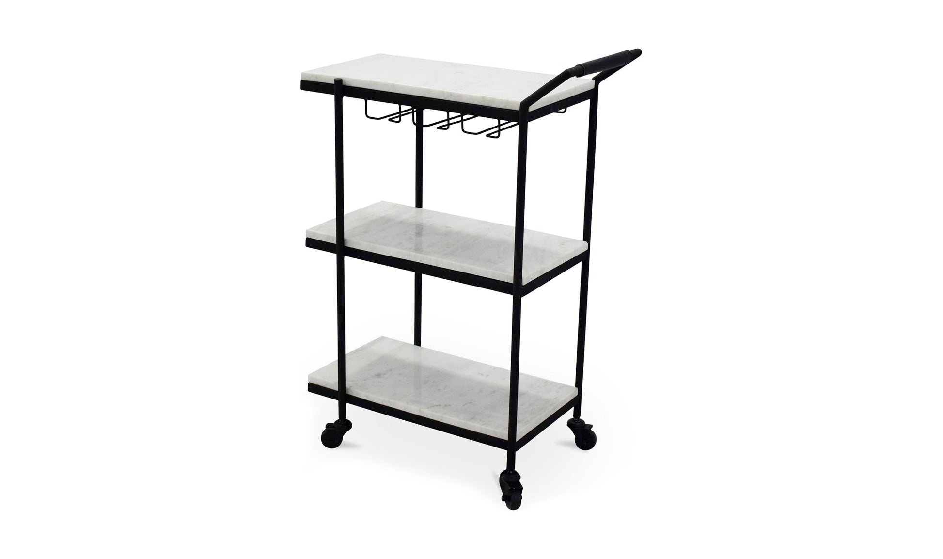 Il carrello bar Midnight sarà sicuramente un successo per il tuo prossimo evento. Questo pezzo forte della sala da pranzo ha uno stile tradizionale con un tocco di glamour retrò. Dotato di tre ripiani in marmo bianco alloggiati in una struttura in ferro, questo carrello ti permette di riporre i tuoi drink preferiti, bicchieri e accessori per cocktail e di servire i tuoi ospiti con stile.